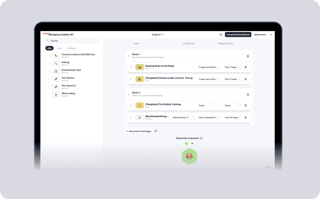 Perfekt für mehrstufige Onboardings, Compliance-Schulungen oder langfristige Weiterbildungsprogramme.